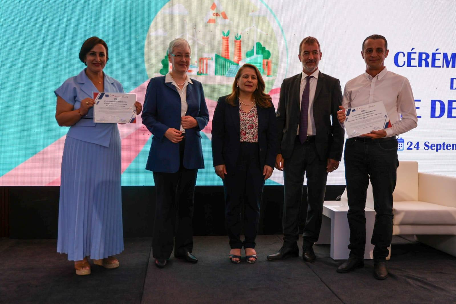 Le CETTEX (Centre Technique du Textile) a eu l’honneur de participer, le 24 septembre 2025, à un événement majeur pour l'avenir de l'industrie tunisienne : la cérémonie de clôture du programme de décarbonation. L'événement culminait avec la remise de certificats de compétences en bilan et comptabilité carbone.La cérémonie s'est déroulée sous la haute présidence de Mme Fatma Thabet Chiboub, Ministre de l’Industrie, en présence de personnalités clés telles que Mme Elisabeth Wolbers, Ambassadrice d’Allemagne en Tunisie, et M. Tom Ashwanden, Chef de la section de coopération de la délégation de l’Union européenne.Cette initiative a permis de former un total de 46 experts des secteurs publics et privés, dont six 6 experts du CETTEX. Ces spécialistes sont désormais équipés pour mesurer l'impact environnemental des entreprises.De plus, le programme a apporté un accompagnement essentiel à 46 entreprises industrielles dans le calcul précis de leur bilan carbone/empreinte carbone. Parmi elles, 15 entreprises du secteur Textile et Habillement ont pu bénéficier de cette expertise cruciale.En investissant dans la montée en compétence de ses équipes et le soutien aux entreprises du secteur, le CETTEX réaffirme son engagement ferme en faveur du développement durable. Cette action est en parfaite cohérence avec les objectifs de la stratégie nationale industrielle et d’innovation à l’horizon 2035.